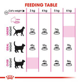در جدول زیر، میزان و مقدار مناسب این غذا بر حسب وزن و سن گربه بالغ آورده شده است. این دستورالعمل نمونهای از دستورالعملهای ثبت شده روی بسته محصول است: